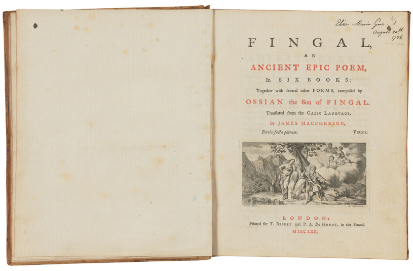 Auch die Schlüsselszene des Romans – der Abschied der Liebenden kurz vor Werthers Selbstmord – spiegelt das Elend der Romanfiguren in älteren Geschichten. Werther, hoffnungslos, liest Lotte, die inzwischen verheiratet ist, aus der damals verbreiteten Ossiandichtung vor, alte gälische Heldenlieder, empfindsam modernisiert, über die schuldlose Tragik und über den heroischen Tod junger Liebender.
