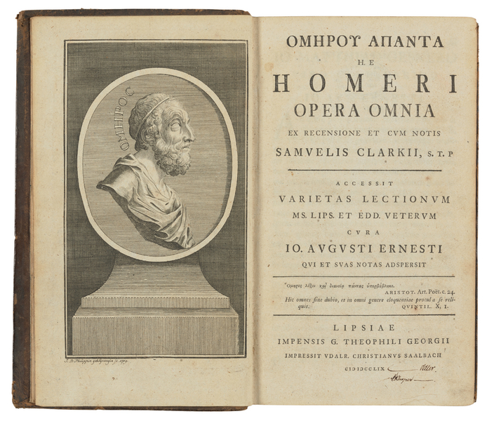 [2] Fünfbändige Homer-Ausgabe von Ernesti, jene Ausgabe, die der fiktive Werther besitzt, die wegen ihres Umfangs für Spaziergänge aber ungeeignet ist, © Klassik Stiftung Weimar – Herzogin Anna Amalia, Bibliothek (Signatur: 19 A 15263)