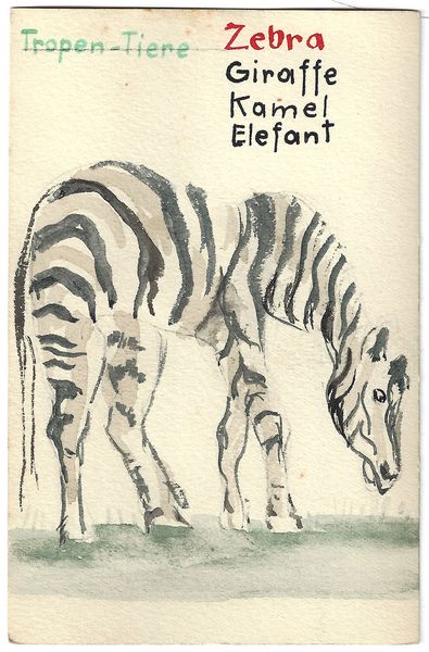 Alice Glaser, Zebra-Karte aus dem Spiel „Das neue Tierquartett“, 1939
