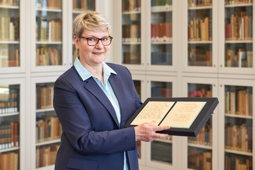 „Wir besitzen die größte Sammlung von Schiller-Fälschungen, es sind über 240 Falsifikate mit mehr als 380 Blatt, ein Großteil davon aus dem Nachlass von Schillers Tochter Emilie“, erzählt Gabriele Klunkert. Die Archivwissenschaftlerin arbeitet am Goethe- und Schiller-Archiv in Weimar – dem ältesten Literaturarchiv Deutschlands. Die Anlaufstelle für Forscherinnen und Forscher aus aller Welt logiert in einem neoklassizistischen Prachtbau aus dem 19. Jahrhundert auf einer Anhöhe über der Ilm. Hier führt Klunkert gewissermaßen fort, was Prozessbeobachter Anton Vollert vor mehr als 160 Jahren begann. Sie erforschte die Gerstenbergk’schen Fälschungen mit dem Ziel einer Ausstellung. Die Schiller-Nachahmungen sind heute genauso sorgsam behütet und wohltemperiert untergebracht wie der echte handschriftliche Nachlass der beiden Namensgeber des Archivs und anderer herausragender Vertreterinnen und Vertreter des deutschen Geisteslebens wie Christoph Martin Wieland, Johann Gottfried Herder oder Bettina und Achim von Arnim. „Wir passen sehr auf, dass unsere Hunderttausenden von Handschriften erhalten bleiben“, sagt Klunkert. So ist es etwa verboten, einen Kugelschreiber in den Lesesaal mitzunehmen. Ein unachtsamer Tintenstrich soll kein unersetzliches Manuskript beschädigen.