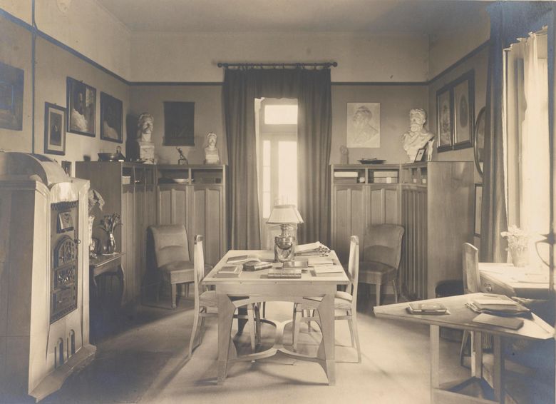 [2] Atelier Louis Held, Beratungszimmer im Nietzsche-Archiv (links zwischen den Büsten der Siegesbote von Marathon „NENIKHKAMEN“), 1926, © Klassik Stiftung Weimar – Goethe- und Schiller-Archiv
