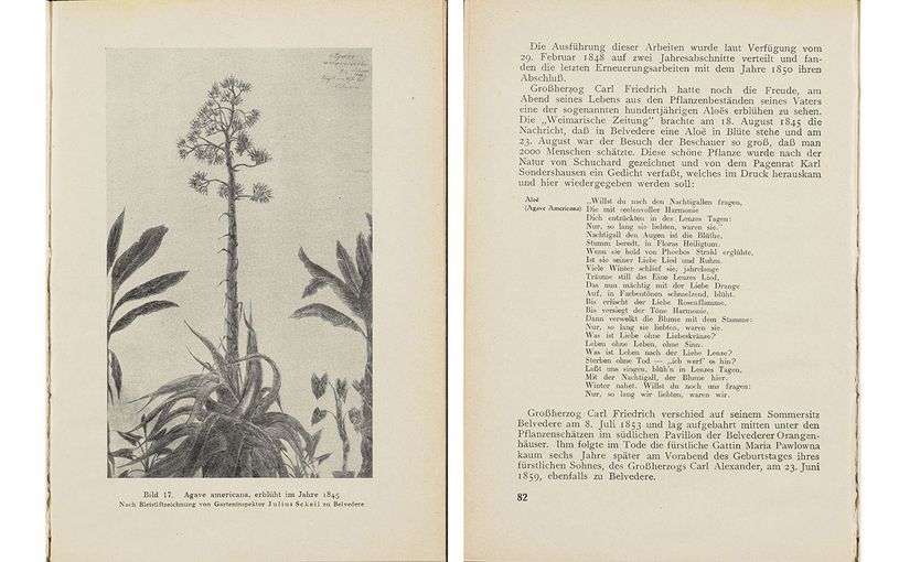 Aber auch im 19. und 20. Jahrhundert kamen Agaven zur Blüte, wie eine Zeichnung von Julius Sckell, dem damaligen Garteninspektor Belvederes, aus dem Jahr 1845 sowie ein Gedicht von Karl Sondershausen aus demselben Jahr zeigen. Darin heißt es: