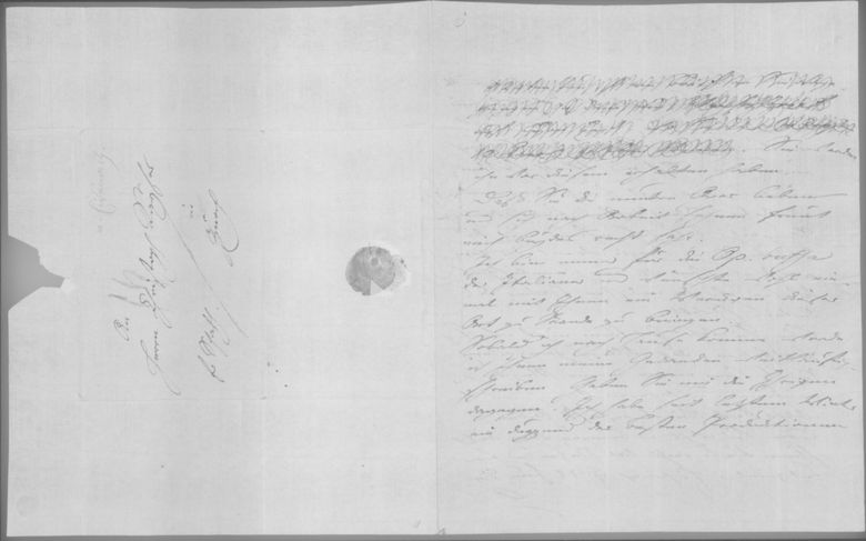 Die ersten vier Zeilen von Goethes Brief vom 28. Juni 1784 an seinen Frankfurter Jugendfreund, den Komponisten Philipp Christoph Kayser (1755–1823), sind durch Tintenschlingen unkenntlich gemacht. Goethes eigenhändiger Text ist nicht im gleichen Grad durch diesen Eingriff unlesbar geworden. Schon mit bloßem Auge lassen sich viele Worte erkennen. Soweit waren die Herausgeber der Weimarer Ausgabe, als sie diesen Brief 1890 abdruckten und die ersten zweieinhalb Zeilen und das letzte Wort reproduzieren konnten: „d. 24. Jun. ist ein Brief an Sie abgegangen in dem ein Wechselbrief auf Lyon lag, wo [...] können.“