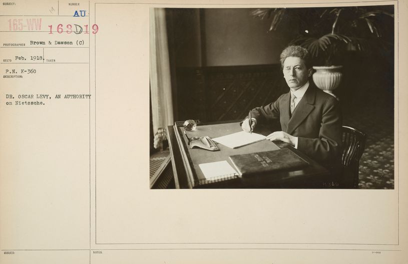 Der bereits erwähnte Oscar Levy, ein überzeugter Europäer und säkularer Jude, lebte seit 1892 in London, wo er zwischen 1907 und 1913 die erste Gesamtausgabe Nietzsches in englischer Sprache edierte. Während des Ersten Weltkriegs galt Nietzsche in Großbritannien als geistiger Wegbereiter des deutschen Militarismus. Als Verfechter von Nietzsches Ideen wurde Levy 1921 ausgebürgert, war fortan staatenlos und damit in jeder Hinsicht ein freier Geist. In hunderten Artikeln, die in wichtigen Zeitungen Englands, Deutschlands, Frankreichs und Amerikas erschienen, focht Levy über Jahrzehnte hinweg für den Philosophen und gegen all jene, die Nietzsche seines Erachtens falsch verstanden oder gewaltsam umdeuteten. Sein bereits seit 1908 existierender Kontakt zum Nietzsche-Archiv ging zurück, je mehr sich Elisabeth Förster-Nietzsche dem Faschismus und Nationalsozialismus zuwandte. Über Nietzsches Schwester schrieb Levy 1935: Diese „blinde Pythia des Nietzsche-Kultus […] hat dessen ‚Umwertung aller Werte‘ einfach in die ‚Wertung aller Unwerte‘ umgefälscht“.