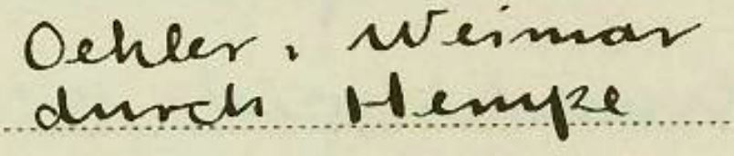 Die im Zugangsbuch der Landesbibliothek ebenfalls angegebene Provenienz „Oehler, Weimar“ ließ sich nicht eindeutig identifizieren. Sie gibt Anlass für Spekulationen. Handelt es sich dabei um den seinerzeitigen Leiter des Weimarer Nietzsche-Archivs Max Oehler? Dessen Bruder Richard Oehler war Direktor der Stadt- und Universitätsbibliothek Frankfurt am Main und in dieser Funktion an der Verwertung NS-verfolgungsbedingt entzogener Buchbestände beteiligt. Bücher aus einem solchen Bestand konnten bereits in der Herzogin Anna Amalia Bibliothek identifiziert werden. Ist auch Der gegenwärtige Goethe auf diesem Weg von Frankfurt nach Weimar gekommen? Was diesen Zusammenhang betrifft, besteht noch weiterer Forschungsbedarf.